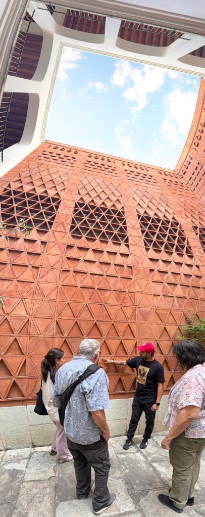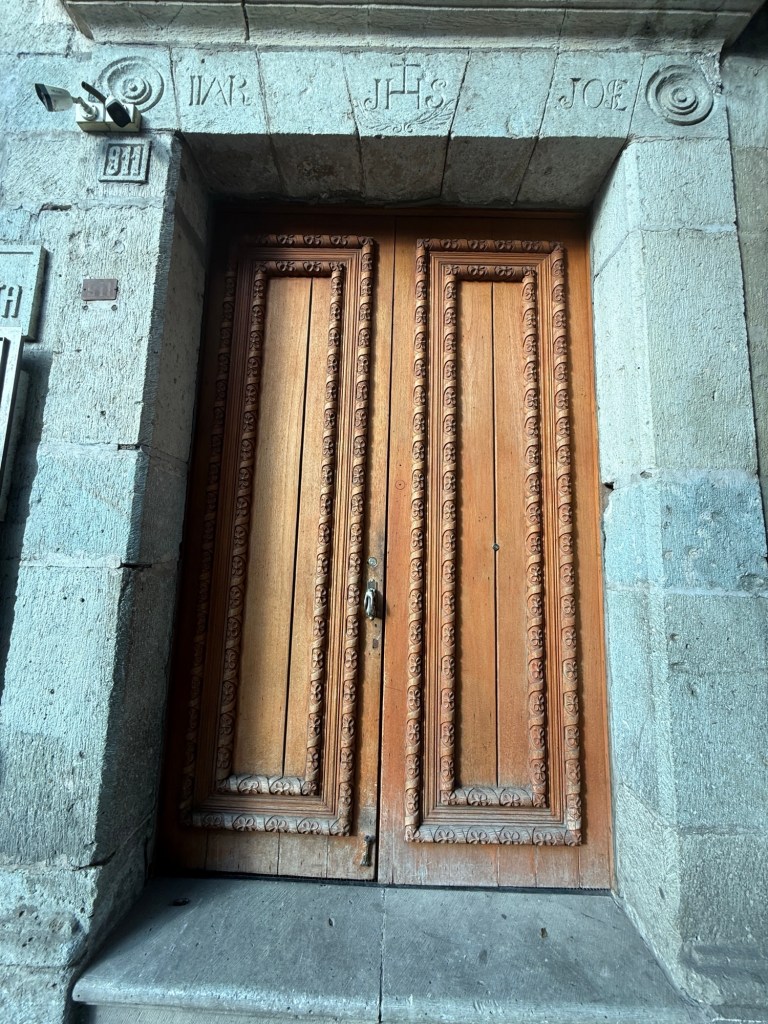 On the way to visit the cathedral and cultural museum, we learned a wedding was taking place and could see celebration preparations in the plaza in front of the cathedral. So we waited in hopes of catching a glance, not realizing they would lead a procession to through town. Dave got better photos after playing football with vendors’ son while we waited. Later we joined an architect for a tour of his favorite places around town.