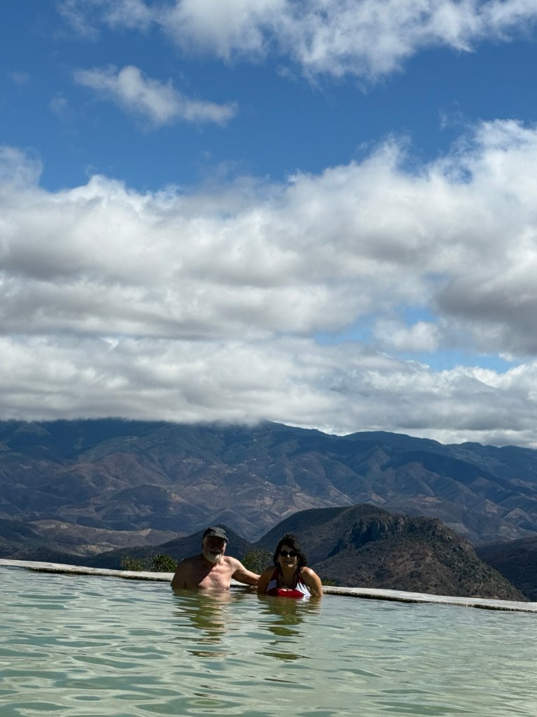 One of the pools at Hierve el Agua. we saw a roadrunner shortly afterward and if any of my camera photos came out, I’ll add that once home. I also saw my first stingless bees here and if any of those photos are nice, will also add. In Mexico, Central America, and South America, there are native bees that make honey. Though they don’t sting, if you disturb their nests, they bite en masse. The honey is considered very nutritious and medicinal.