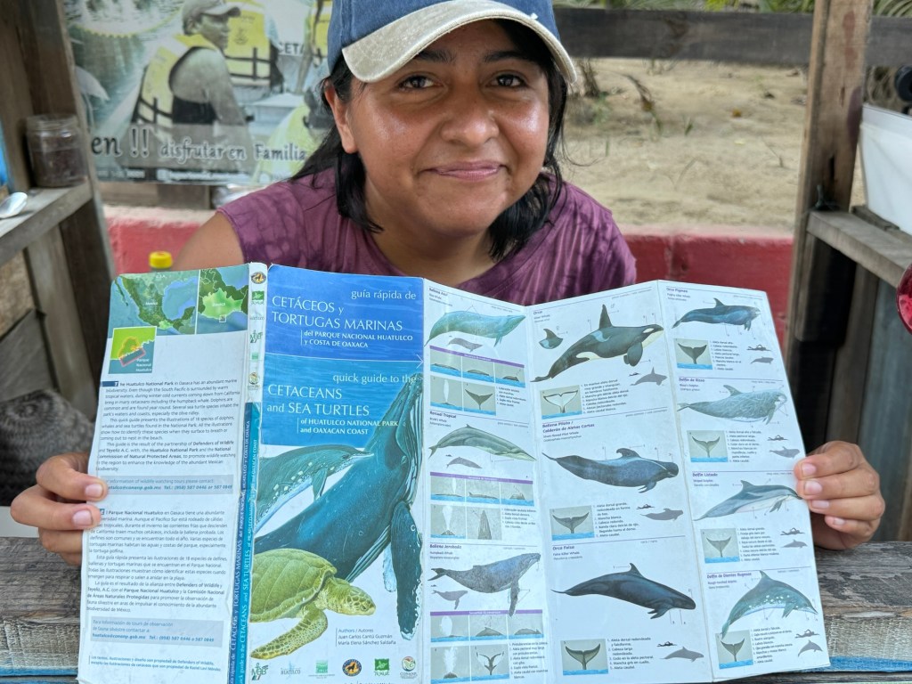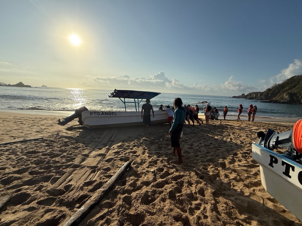 The boats are zoomed onto the beach across plastic tubing and when ready to go back in, everyone pitches in to turn them around and push back in.A humpback whale!We saw a few humpbacks but this was the best shot I got. Felt like maybe just watching and enjoying would be better than trying to capture photos. Faviola said there wasn’t evidence that the earlier boats saw more, but tours from other towns left at 6a or 7a vs Mazunte’s at 8a. One researcher offers the opportunity to help him monitor humpbacks at 6a from the shore (I imagine a cliff) near Puerto Escondido, a couple hours west, so couldn’t help thinking maybe earlier is better…The dolphins tend to swim right in front of the boats so we took turns sitting at the very front. Sorry for the bit of green (I had a phone holder that partially blocked the lens sometimes). Mating olive Ridley’s turtles. We saw a lot of turtles and I worried about them getting hit when the boats were going really fast. New research indicates turtles are more social than scientists had believed. Sooo beautiful!