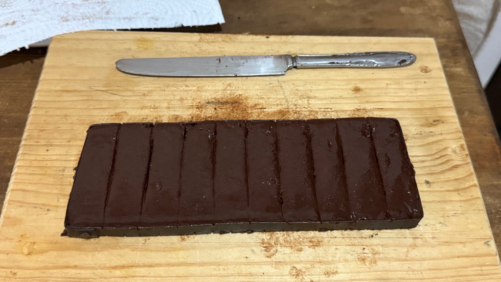 Sol was kind enough to lend me a frame for shaping and drying. She explained the process but she and Rene were going to be out, so luckily she also mentioned I could just roll the chocolate into small balls and flatten into medallions, because my chocolate was very damp and the little frame would never have let me dry enough before departing the next day.
