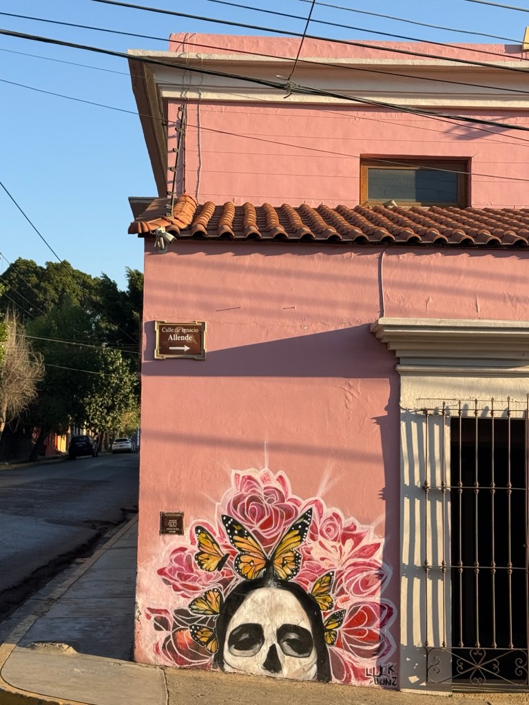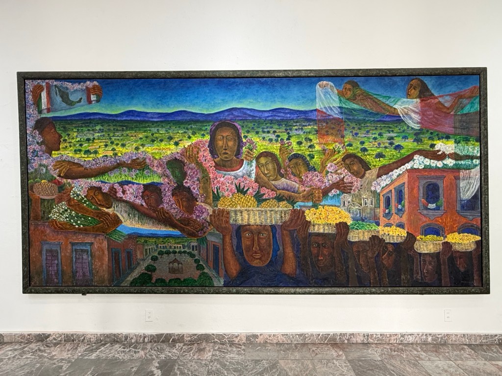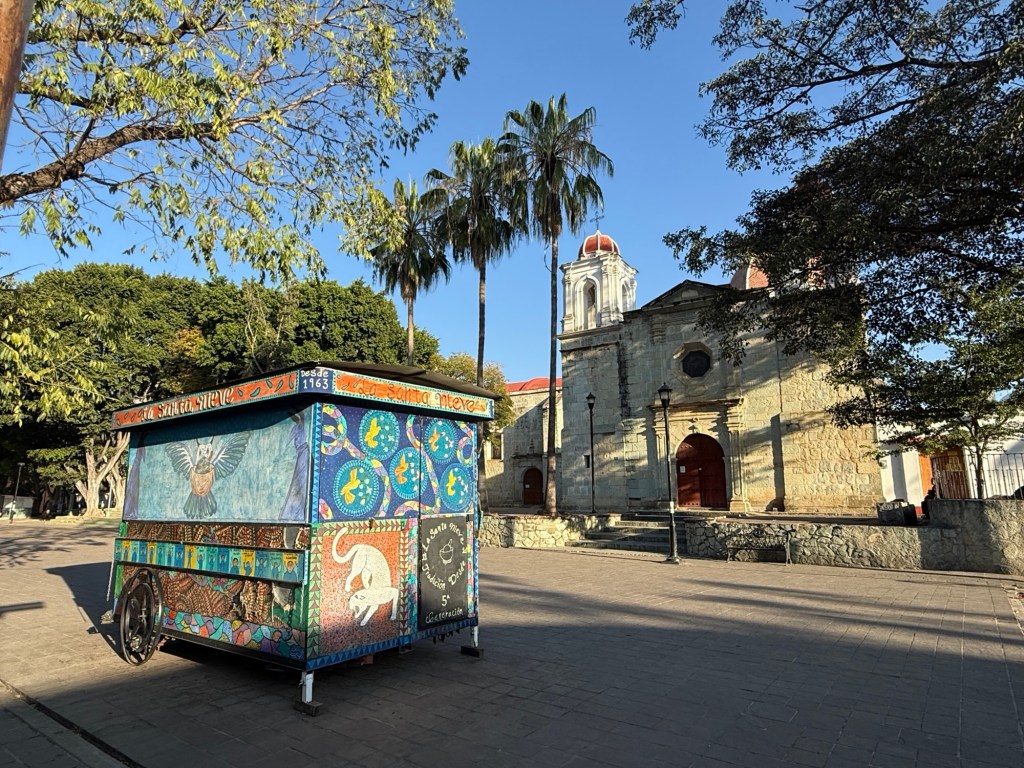 I caught up with Anita and Dave at the Museum of Oaxacan Painters, another lovely gallery. I’m sorry I didn’t capture the artist info for the painting above. These are by J. C. Edgar Before heading to our favorite seafood restaurant, we visited the main square where Anita found a beautiful top, I found a lizard, and Dave found a fabulous ficus tree. The next morning took me by some new murals as I made my way to the bus station. This refers to the tragic killing of protestors in 2016 supporting teachers. An ice cream stand…art everywhere.